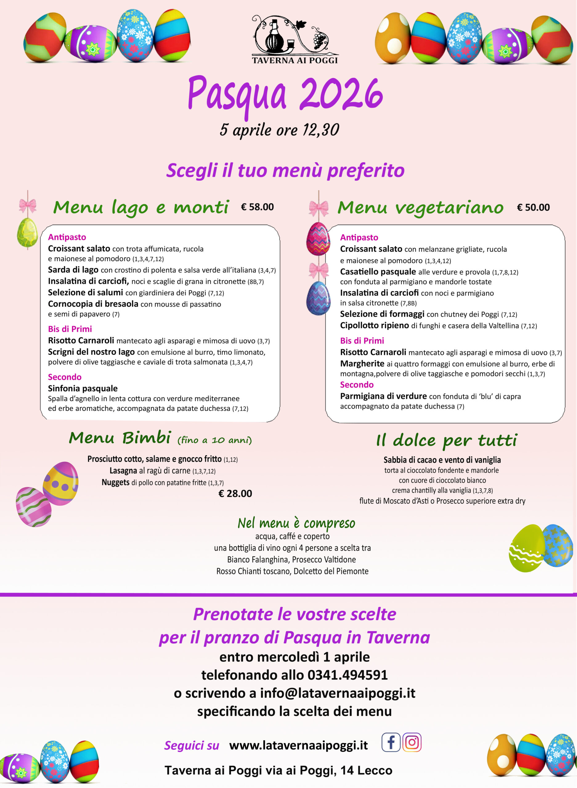 Prenota il tuo posto e goditi la Pasqua all’insegna del buon cibo e dell’accoglienza.